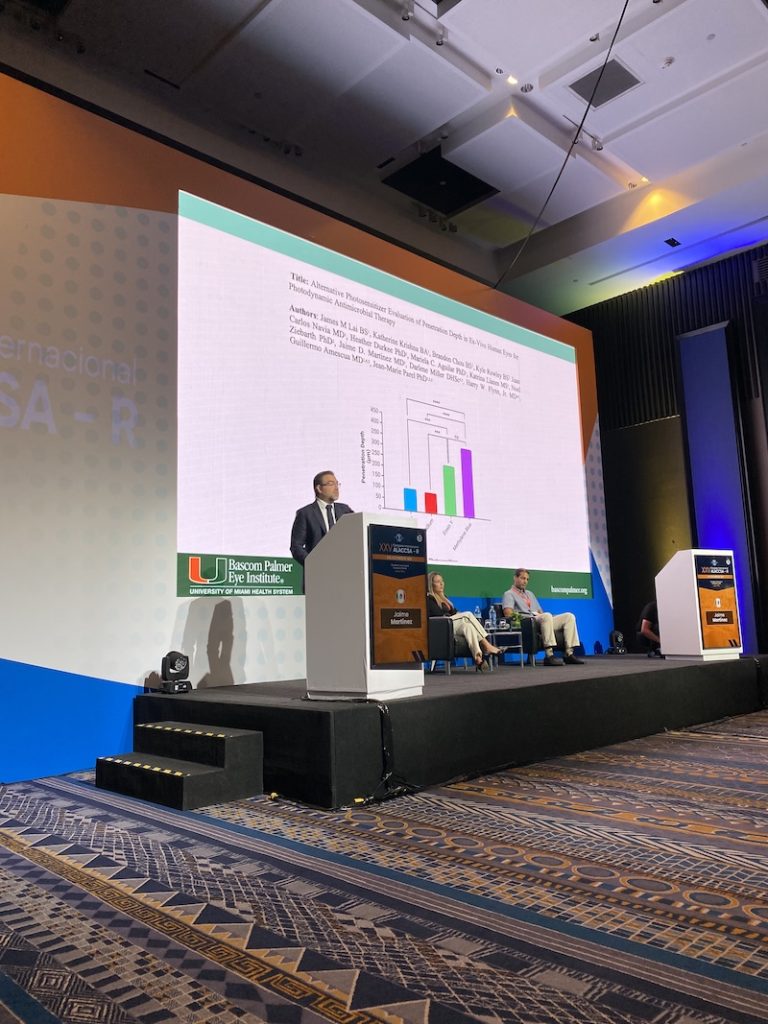 Durante su ponencia, el Dr. Martínez abordó los avances más recientes en el tratamiento de infecciones corneales, un tema de gran relevancia para la salud visual en la región. Su presentación incluyó nuevas estrategias terapéuticas, innovaciones en el uso de antifúngicos, así como la aplicación de tecnologías emergentes para mejorar el pronóstico de los pacientes con queratitis infecciosa.